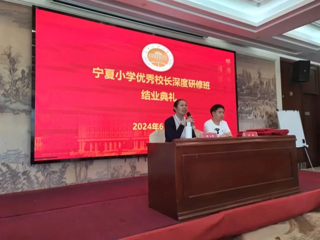承办的“国培计划”(2024)——宁夏小学优秀校长深度研修班举行结业仪式,标志此次研修圆满结束。中文学院党总支书记杨飞群参加了汇报会和结业式,仪式由班主任黄凯主持。