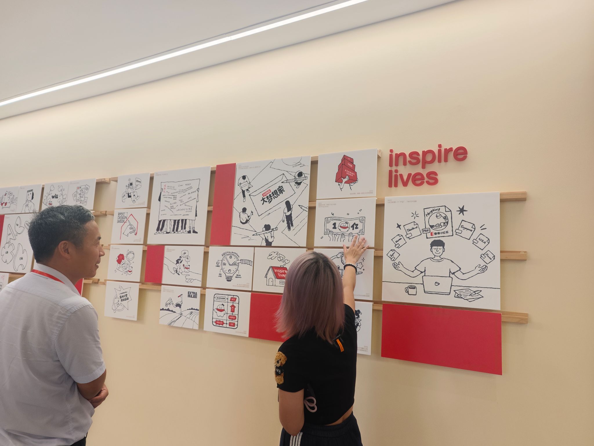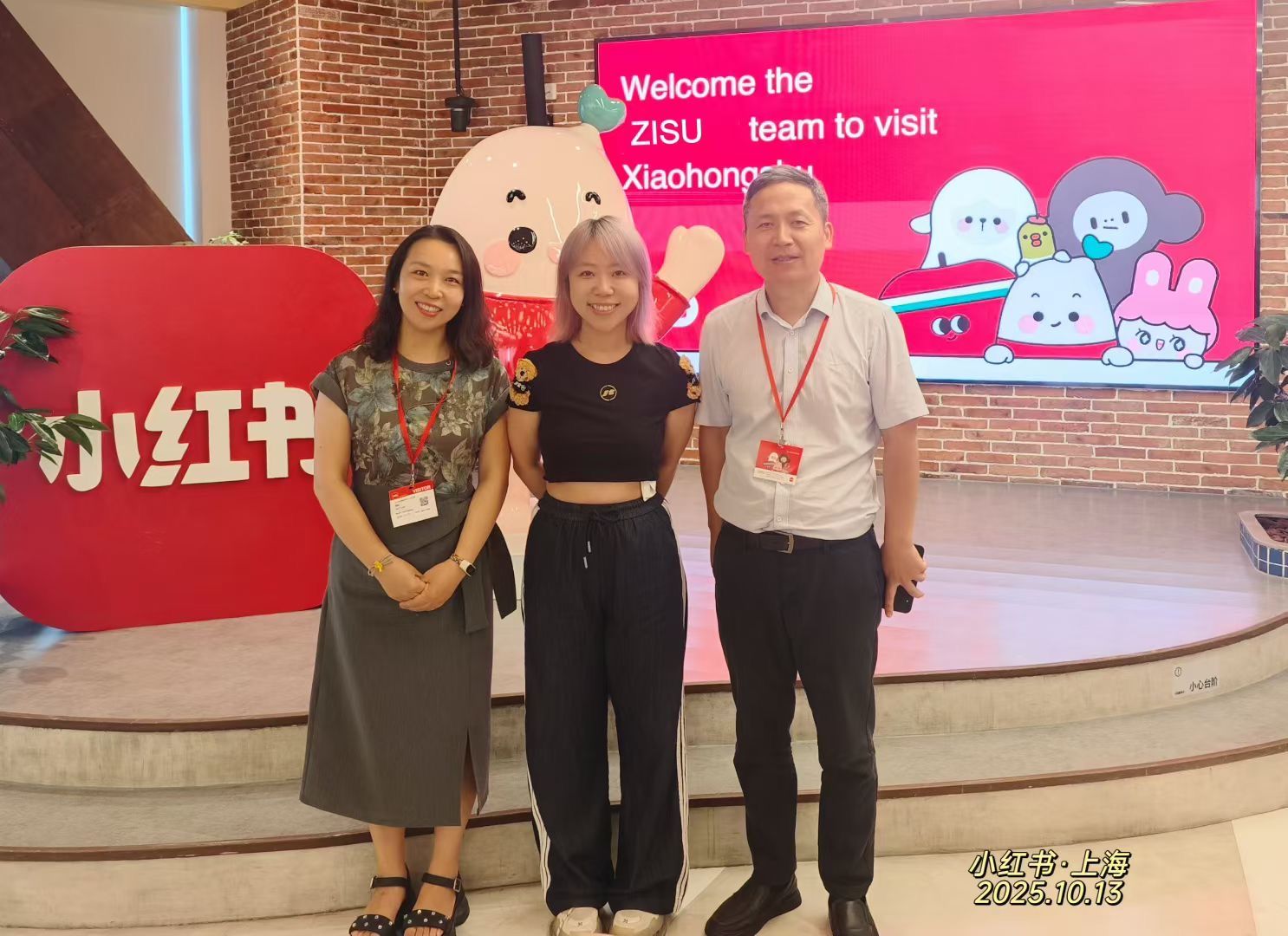 交流访谈后,李莉娜带领马宏程、周礼参观了小红书创业历程墙绘与办公区域,介绍了企业文化等。