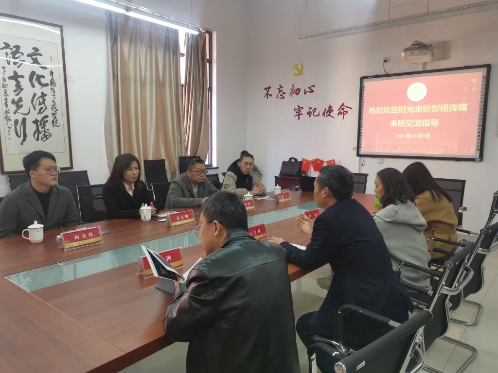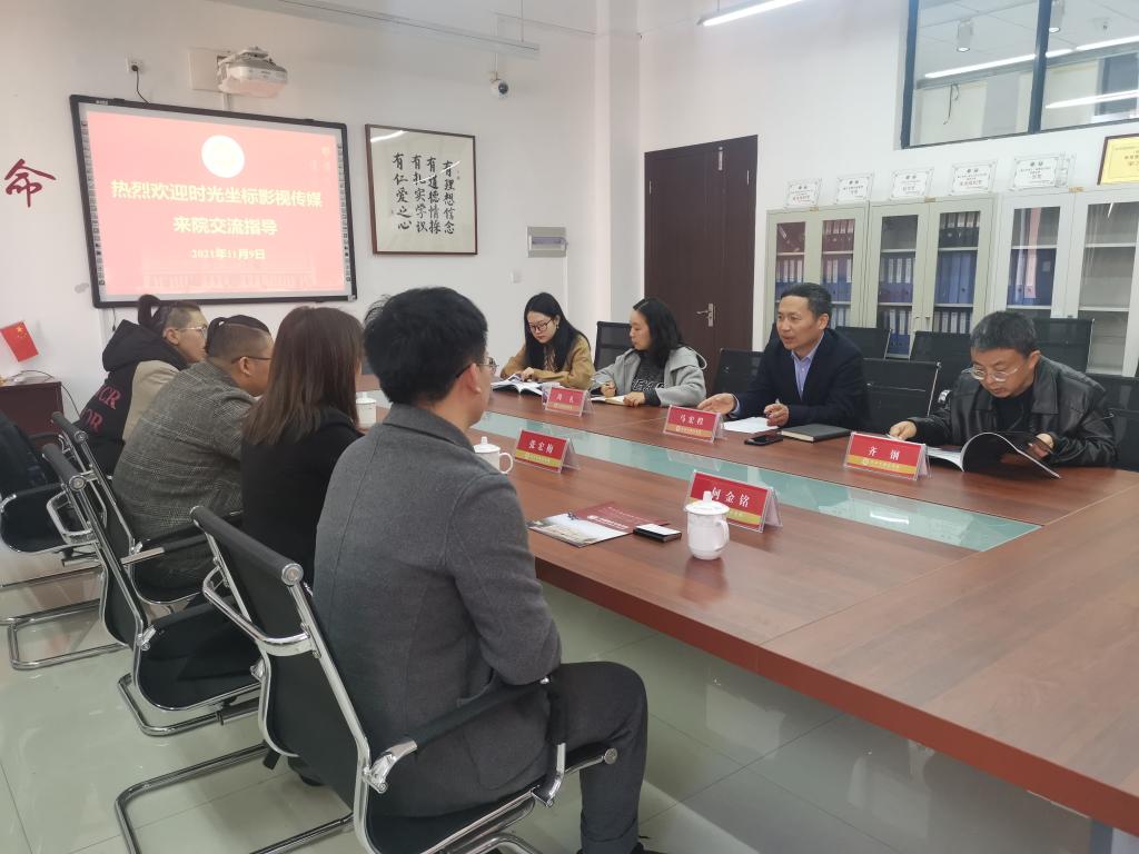 时光坐标影视集团子公司时光新影教育总经理张宏梅介绍了公司的发展情况、主营业务,并对校企合作、产教融合提出意向,时光新影教育副总经理运营总监顾成伟介绍了目前开展的校企合作模式和成效。双方就如何推动产学研协同育人开展深入交流。