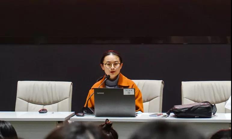俞玉纪同学从两部分进行了她的分享,第一部分为“我的实习体验”,她从“听课、准备阶段”“上课实践阶段”“评改作业”“课后辅导”四个方面给在场的同学们分享了宝贵的经验。第二部分为“我给未来实习生们的建议”,她提出了“三准备”——“心理上,知识量,教学技能”,希望19级的同学们能够“多学习,多上课,多提问”,努力充实自己,扩大自己的知识面。