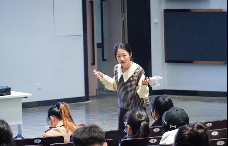陈佳娜同学从“实习感悟及建议”角度做了分享,讲述了她在实习过程中的成长与改变,她表示自己更深刻地感受到了作为一名教师的意义,更充分地意识到教师之于学生的作用。