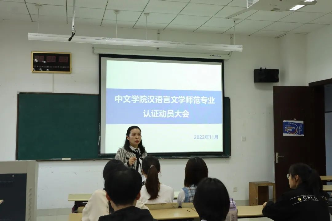为落实学校师范专业认证工作部署,营造良好的认证工作氛围,中文学院于11月10日下午,在品院A501举行了师范专业认证第二场学生动员大会,学院学生组织负责人和各班班长、团支书、学习委员代表班级参加了本次会议。