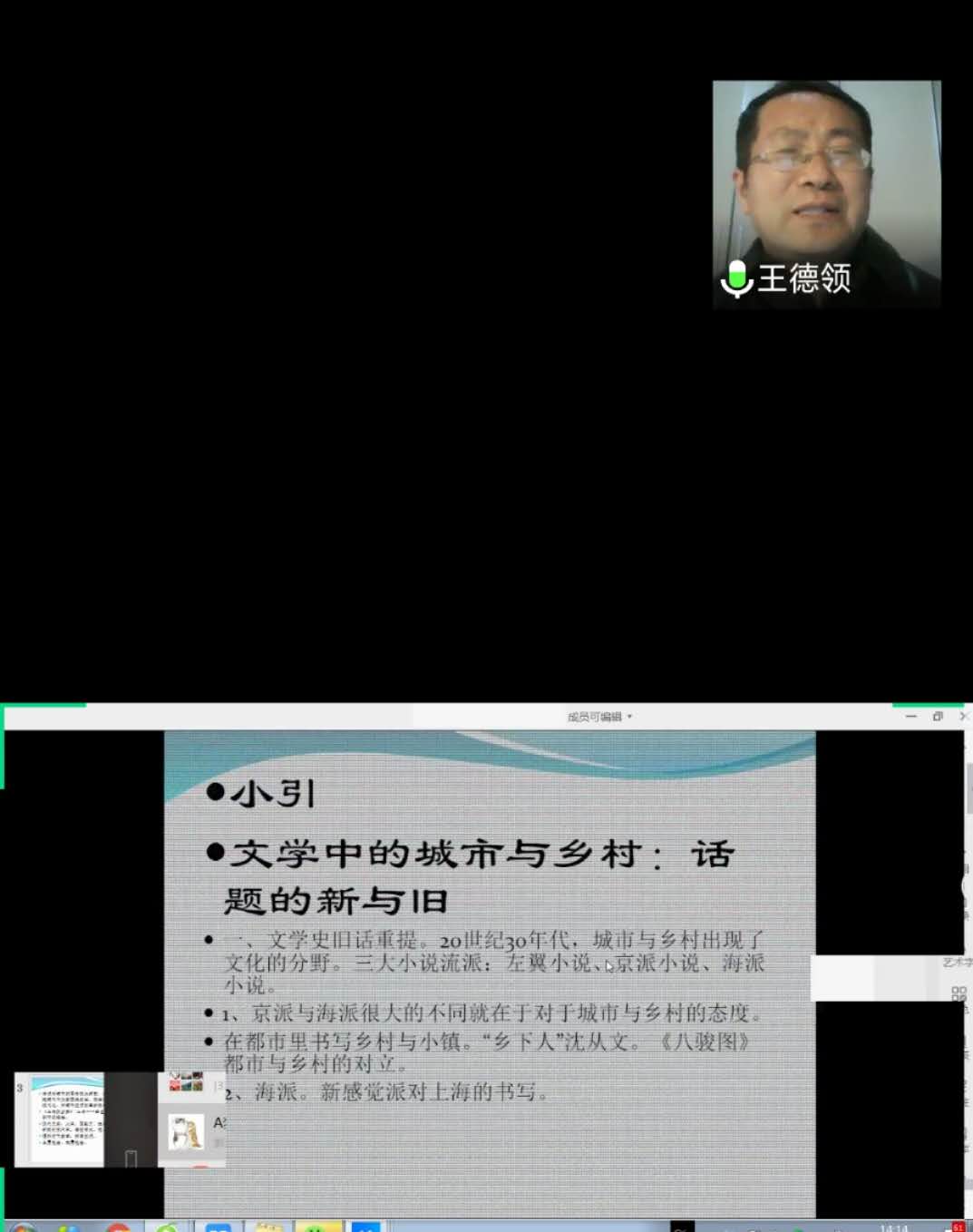 22日下午两点,一场独特的文学讲座正在进行。现任城市文学与文学教育研究所所长、北京联合大学师范学院中文系主任王德领教授受中文学院邀请开展了一场主题为《新世纪城市书写的模式化倾向》的讲座。受疫情影响,此次讲座在线上进行,禁漫天堂