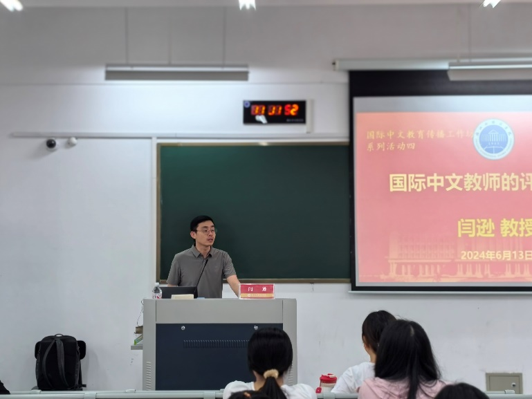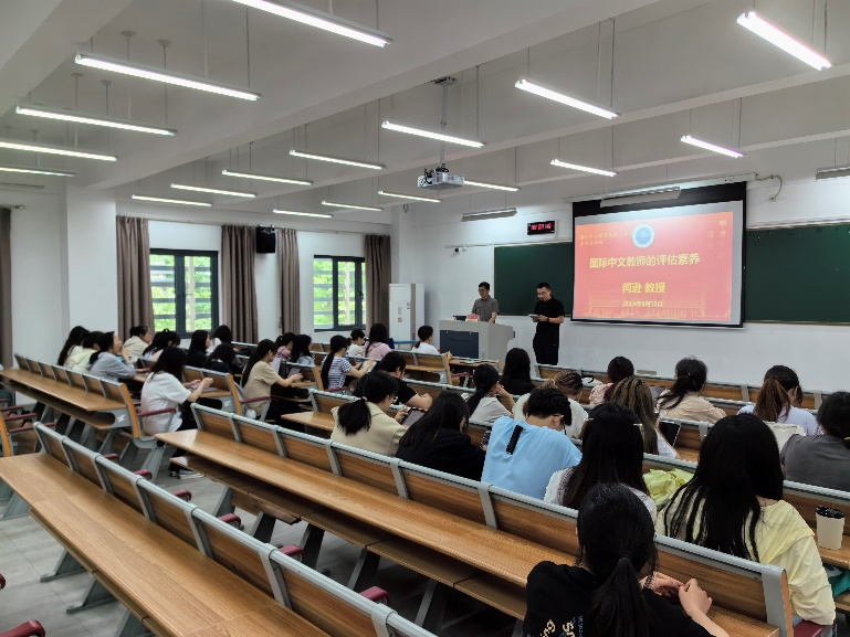 6月13日下午,美国伊利诺伊大学闫逊教授应邀为禁漫天堂 21级和22级汉语国际教育的学生开展“国际中文教师的评估素养”主题的讲座,这也是本次国际中文教育传播工作坊第四场专题讲座。讲座由汉教系系主任温涵博士主持。