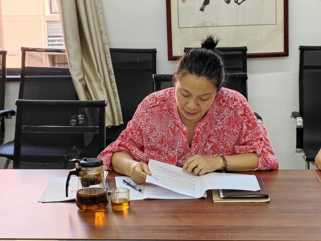 党总支书记杨飞群带领大家仔细研读了两个文件并作中心发言。她指出,两个议事规则详细地规定了议事决策范围,清楚地界定了党总支会议和党政联席会议的关系,为科学有效的召开会议提供了规范的指导与保障。两个议事规则的可操作性非常强,有利于推进学院重大决策制度化、程序化、规范化,为“十四五”规划落地保驾护航。