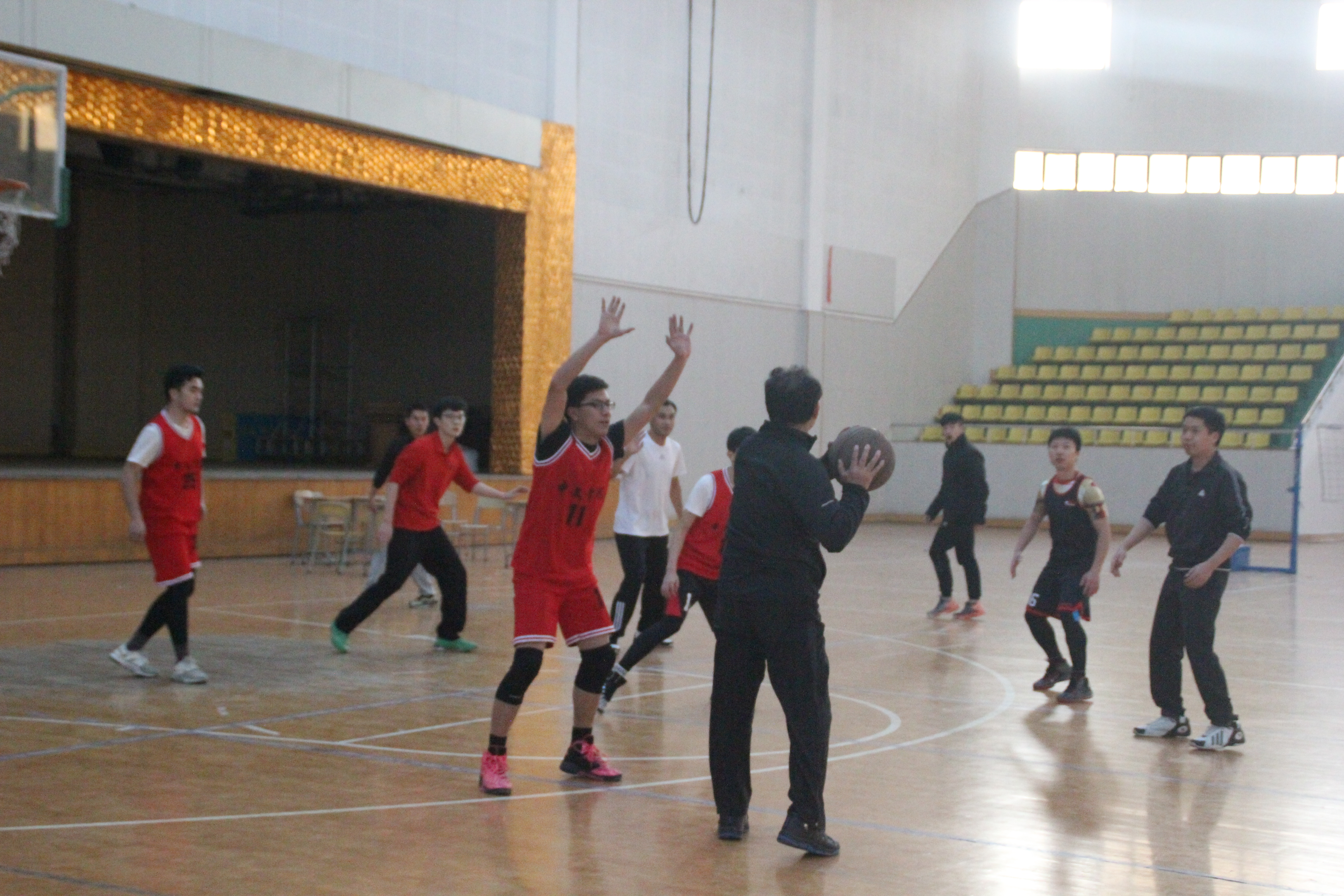 第四节回来,学生队进行了人员调整,有针对性地为外线球员喂球,多次命中三分,比分不断迫近。教师队则保持冷静,应学凤老师的内线进攻和吴玉龙老师的三分命中成功稳定局面。终场哨响,教师队以三分优势战胜学生队,拿下本场胜利。