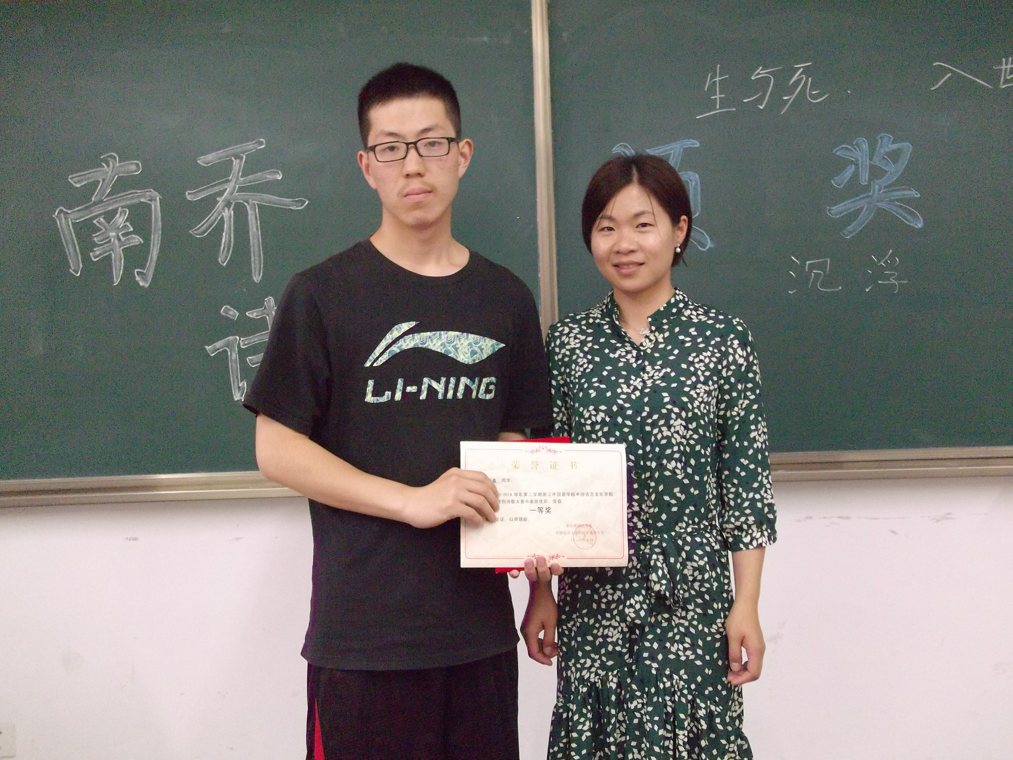 本次诗歌大赛主题为“沉与浮”,历时一个月,得到多个学院学生积极支持,收稿数十篇。经过评委老师田义勇和朱睿达的筛选审核,王泽鑫获得本次大赛的一等奖,雷婷、葛赟赟荣获二等奖,李鑫、15级国贸2班盛成瑶同学获得本次大赛的三等奖。颁奖活动伊始,各位获奖同学都与大家分享了自己的作品及作品感悟,从中我们可以感受到“诗歌来源于生活又高于生活”。之后大家就朱运涛老师所提出的“生与死”、“入世和出世”话题进行了精彩的讨论,大家畅所欲言,气氛活跃。最后,田俊杰老师和朱运涛老师为获奖同学颁奖并合影留念。