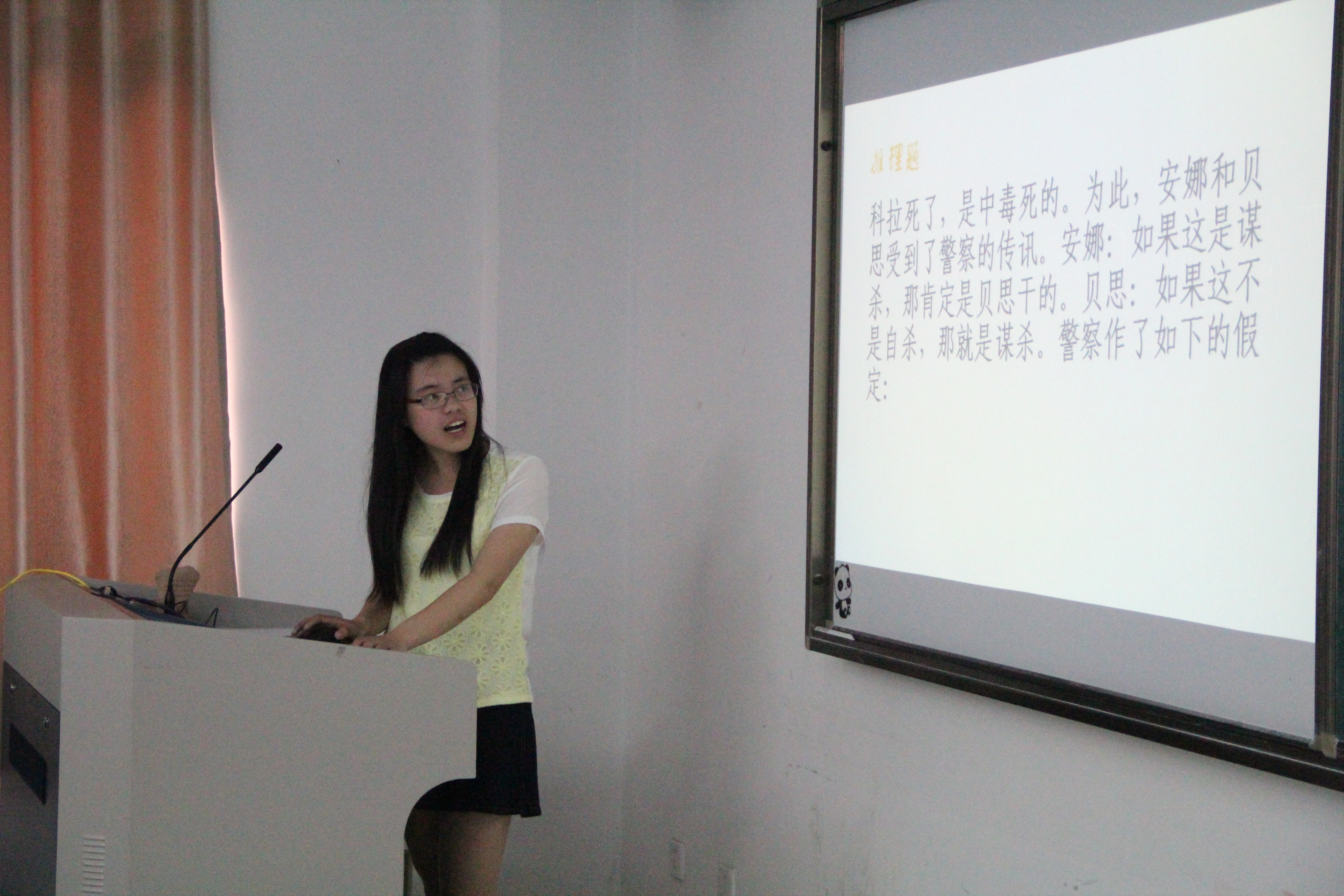 此次读书会以悬疑推理题开题。在主持人的带领下,同学们发散思维,在唇枪舌战中分析蛛丝马迹,发现真相。随后的故事分享中,同学们纷纷上台分享自己喜欢的推理书目和电影,从经典的《福尔摩斯》到《白夜行》,在讨论中大家不仅收获了知识和乐趣,更收获了可贵的友谊。最后的好书及电影推荐环节带大家领略了更广阔的推理世界。