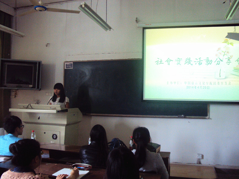 中文学院的社会实践项目每年都成效显著,宝贵经验尤其需要传承,4月29日中午,由学院素质拓展部举办的社会实践分享会在文三校区举行,去年获得突出成绩的“浙外九曲红梅调研小分队”的张烨和曾获省挑战杯一等奖“在杭民营书店发展调研小分队”姚嘉俐受邀给大一的学生分享他们的实践经验。