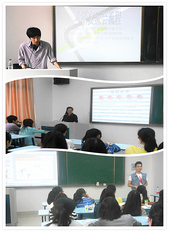 考研经验交流会在小和山校区举行。在2013年研究生入学考试中考取硕士研究生同学就考研的相关问题与大一大二大三的同学进行了交流。