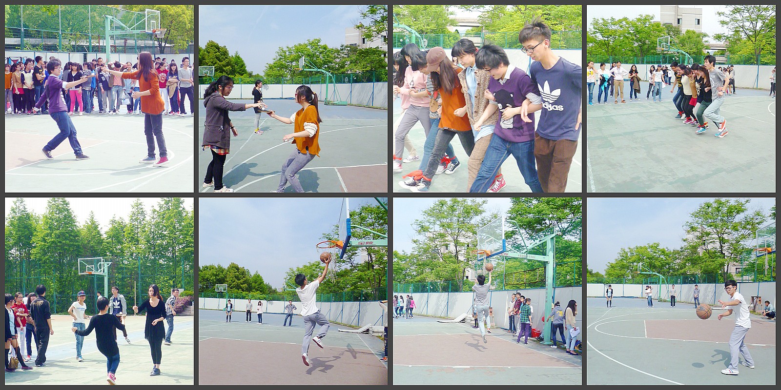 本次比赛共分三个趣味项目:背投乒乓球、传球上篮和七人八足。赛场上,每一项比赛都有条不紊地进行着。热烈的加油声、欢呼声和呐喊声飞扬在运动场的每个角落。“七人八足”项目更是将比赛推向了高潮。此环节要求七个运动员步子大小一样,节奏相同,在“1-2-1-2-1-2”的口号声中,团结协作,以最快的速度到达目的地。比赛在一片欢呼声中完满结束,背投乒乓球、传球上篮、七人八足的夺冠者分别是12级对外汉语班的连莹佳、高迪、潘丽萍组合、12级涉外文秘班团队和11级汉师班团队。