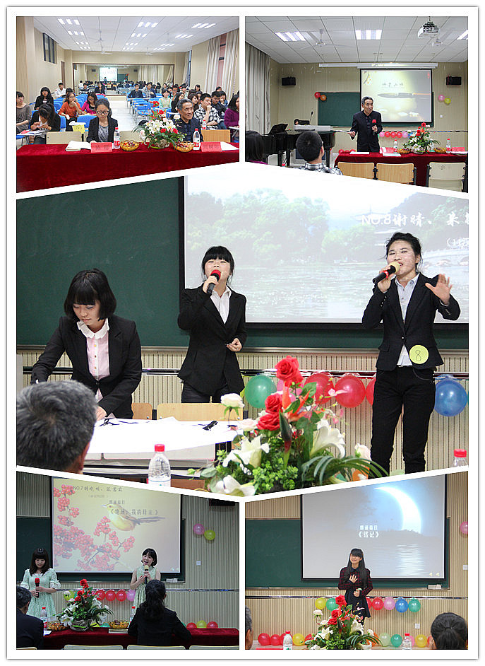 在小和山校区举办了以“读国学经典,育道德人才”为主题的经典诵读比赛。 国家级普通话测试员周树年老师与英语语言文化学院辅导员陈超老师担任本次比赛评委。