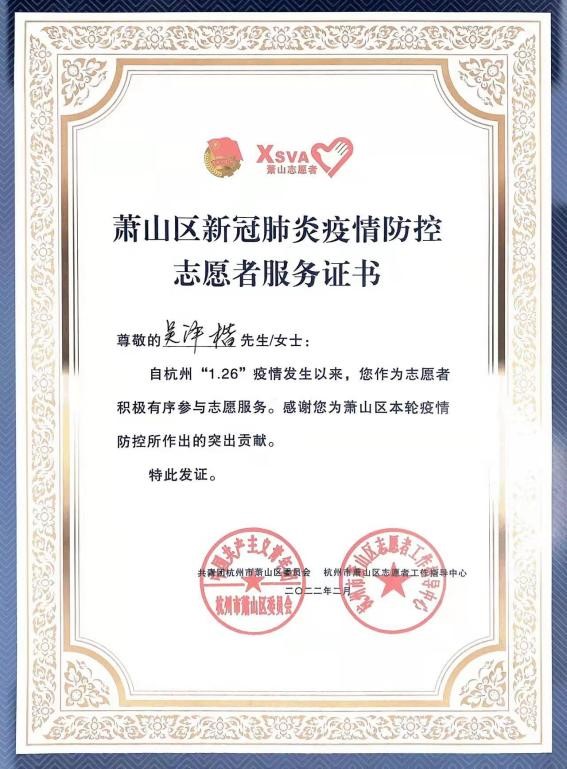 据描述,今年一月底时爆发了“奥密克戎”病毒,亟需人手共筑疫情防控安全防线,而彼时恰逢吴泽楷同学在义桥镇参加寒假大学生训练营,于是,这位勇敢的浙外学子毅然决然将自己的宝贵假期贡献给了这一份意义非凡的志愿工作。