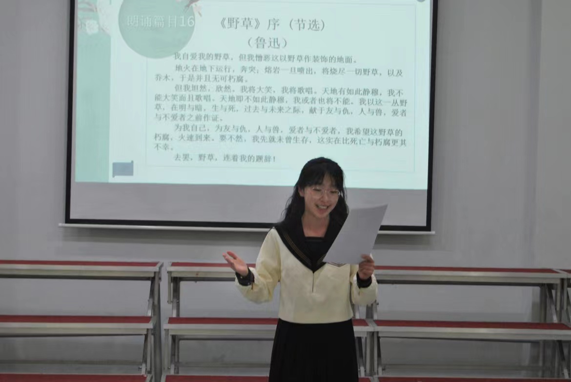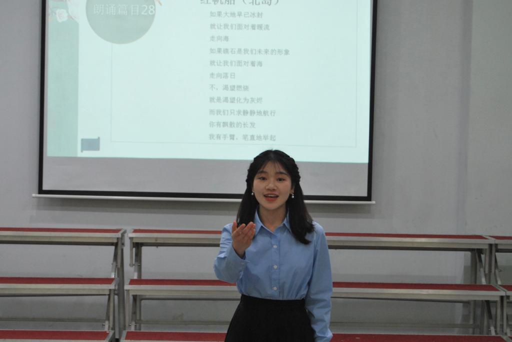 17名进入决赛的同学,从限定题库中自由挑选命题,经由古代篇目诵读、现代篇目诵读、主题演讲三个展示环节进行比拼。