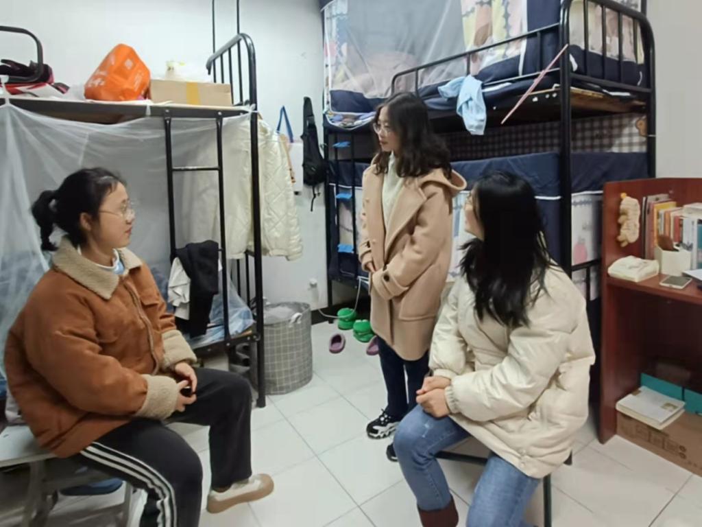 同时,班委们两两一组,分别拜访各班寝室,看看各寝室的卫生清洁情况,与同学们面对面交流的同时也提供一些寝室生活建议,并举行一些寝室联谊活动。