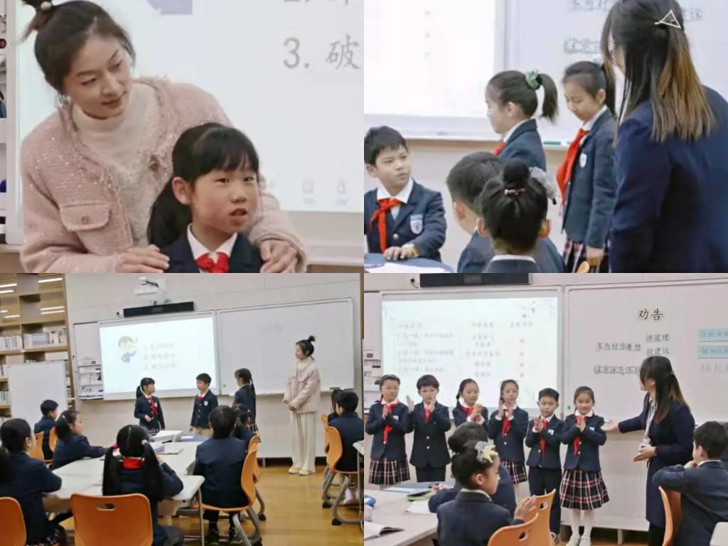 徐莉老师由宇宙探秘闯关游戏导入,通过字源猜字引出“包”字族。引导孩子们在多种方法朗读、动作感知字、玩转棋盘游戏等活动中了解字族识字和偏旁归类识字的方法。徐老师的课堂灵动活泼、趣味盎然,孩子们在一个个设计精巧的活动中掌握了识字方法。