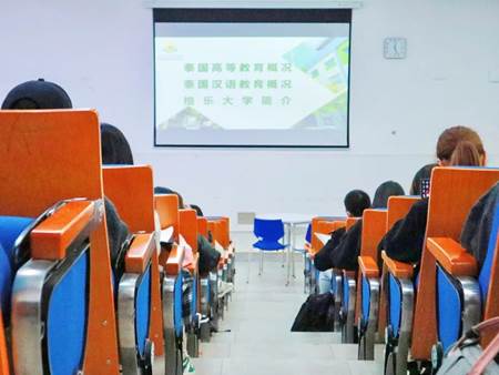 会后,张超给浙外学生做了讲座,分别从泰国高等教育的概况、泰国汉语教育的发展历程以及格乐大学介绍这三方面进行了分享。提问环节,同学们踊跃提问,张超老师也为大家进行了细致的解答,现场其乐融融。最后,马宏程院长总结道:“当今青年倘若具有国际情怀,以及全球视野,必将茁壮成长,使合作共赢之门大开。”