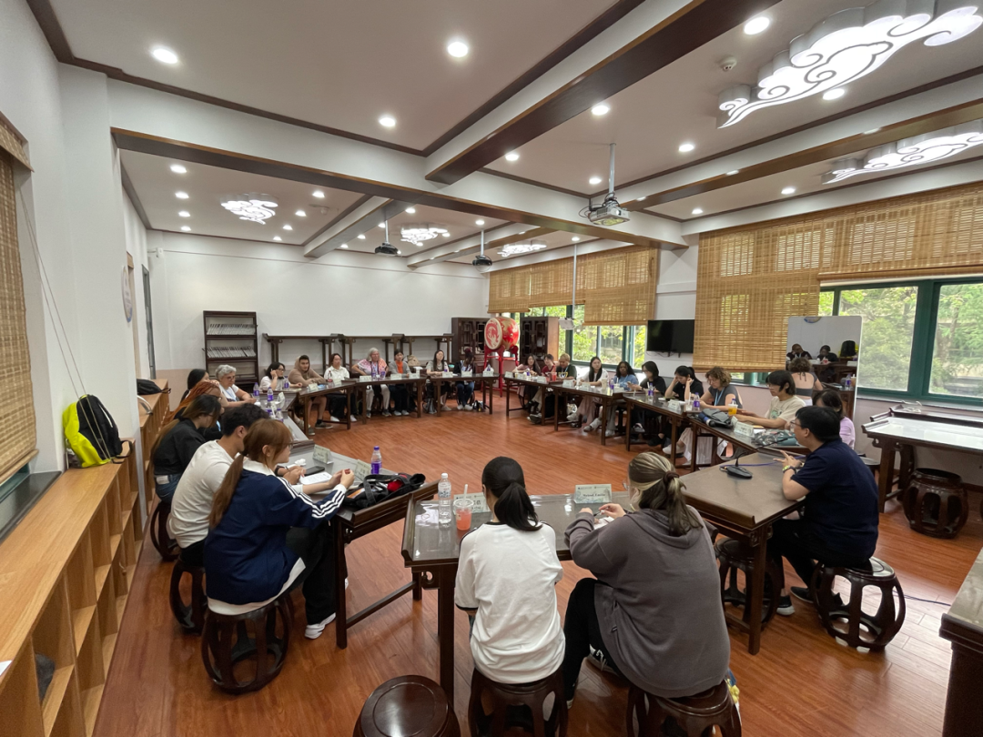 下午,中美学生文化分享会开始,大家围成一个圆桌,就合作撰写的论文展开深入讨论。在随后的论文报告环节,每位参与者都分享了想要探讨的论文主题,进行了深入的阐述和分析。他们从不同角度探讨了中华文化在生活的体现,如服饰、医药、饮食等,提出了许多富有见地的观点和独特的视角。