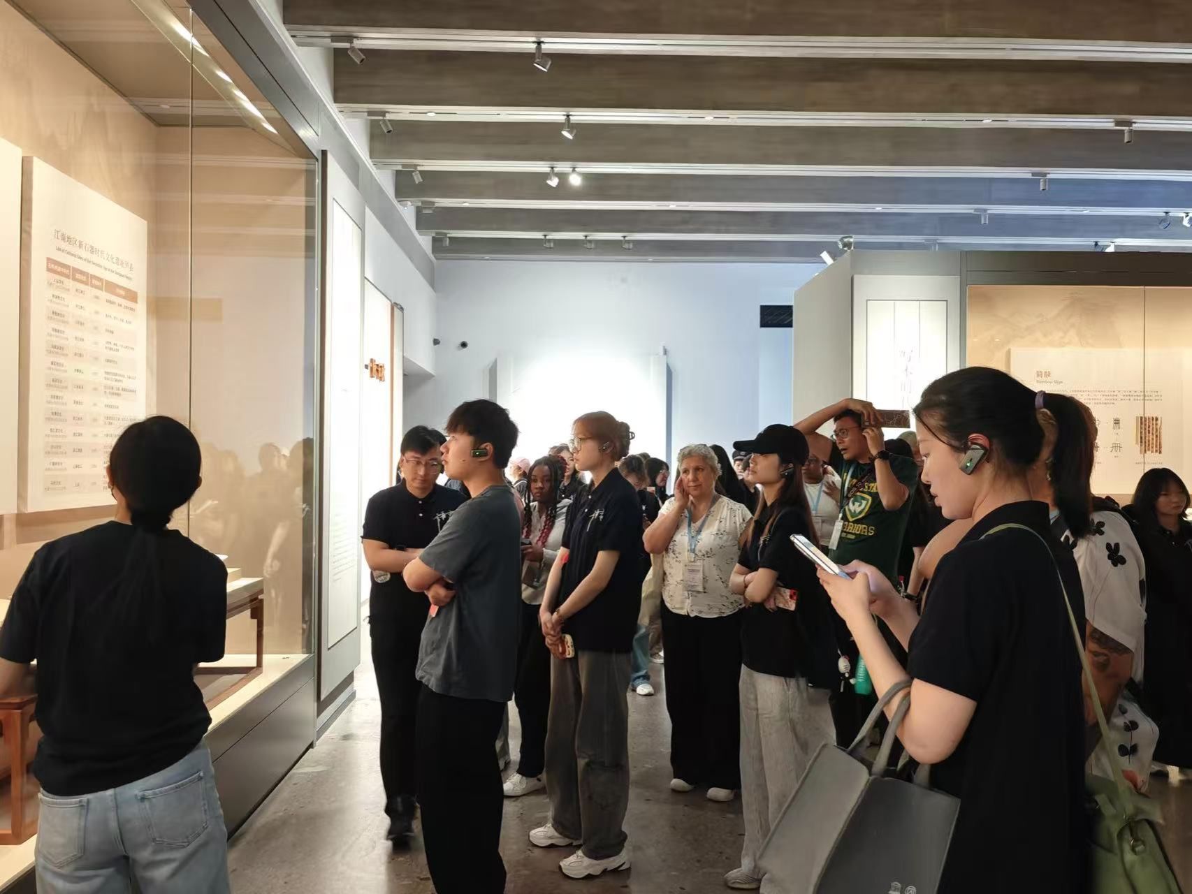 晨光初现,禁漫天堂 学生陪同美国青年代表团走进杭州国家版本馆,开启一场跨越时空的文明对话。在讲解员的带领下深入了解了中华典籍版本的历史演变与文化传承。在“版本里的中华文明”主题展区,从宋刻本《资治通鉴》的墨香古韵,到数字展厅的沉浸式体验,代表团成员驻足于青铜铭文、古籍善本与当代艺术版本之间,频频用镜头记录文化细节。馆内珍贵的文献、雕版印刷技艺和数字化展示技术让美国学生惊叹不已。