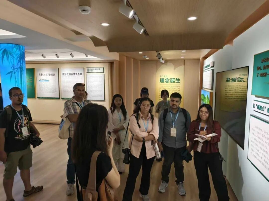 次日,研习营走进“两山”理念发源地——安吉余村。学员们在游客中心观看沙盘展示,了解“大余村”发展格局。还参观了绿色建筑青年图书馆,在文化礼堂观看余村主题电影,并详细听取了“浙江践行‘两山’理念20周年主题展”的讲解。尼泊尔师生一行盛赞中国生态文明建设、绿色低碳转型、乡村振兴成就。在大余村青年人才社区,尼泊尔师生还了解了本地为吸引青年返乡所提供的综合服务体系,及其中小企业落地成果。