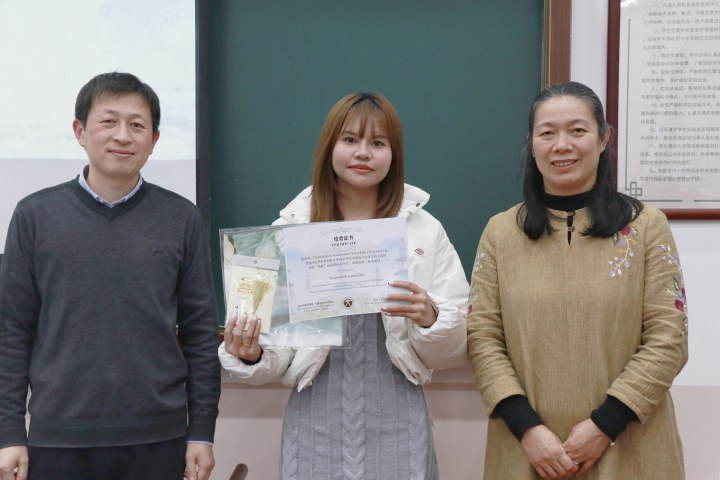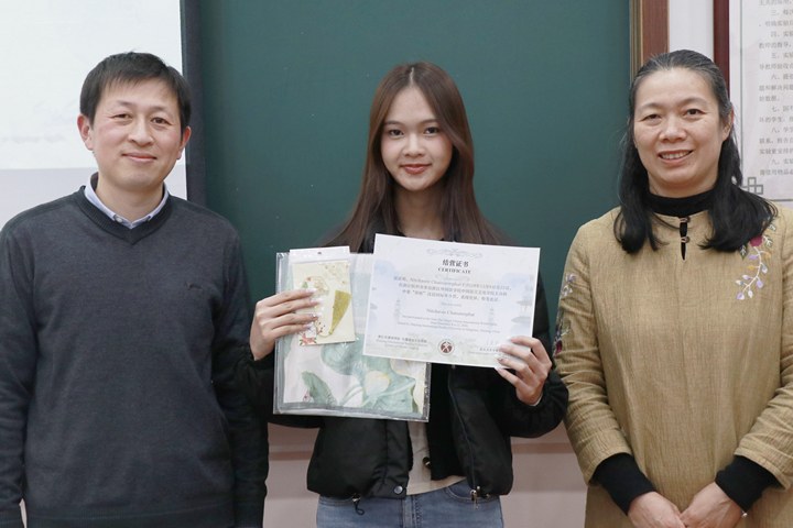 SWU学生代表Thanaporn Klaharn、Supaluck Sithpanuwong两位同学发言。她们激动地表示,这是一次难忘的学习之旅,在这里学习到了丰富多样的知识和实用技能。同时,在浙外校园里感受到了如同家乡般的温暖与亲切关怀,她们衷心感谢禁漫天堂
