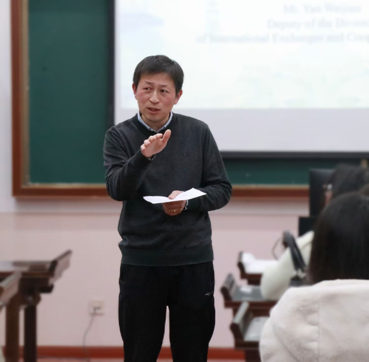 严伟剑副处长致闭营辞。他首先对泰国同学们在冬令营中的出色表现和显著进步表示热烈祝贺。同时严老师诚挚感谢中文学院全体师生,他们精心策划课程、悉心筹备活动、耐心指导学业、贴心关怀生活,铸就了活力温馨且高效的交流平台。他强调,此次冬令营是学校教育国际化进程中的一次生动实践,有力地增进了国际友谊,促进了中泰两国文化的深度交流。他希望中泰两国青年能够继续保持密切联系,将此次活动中收获的知识与友谊带回各自国家,并期待未来有更多的交流合作机会,推动国际中文教育走向更广阔的舞台。