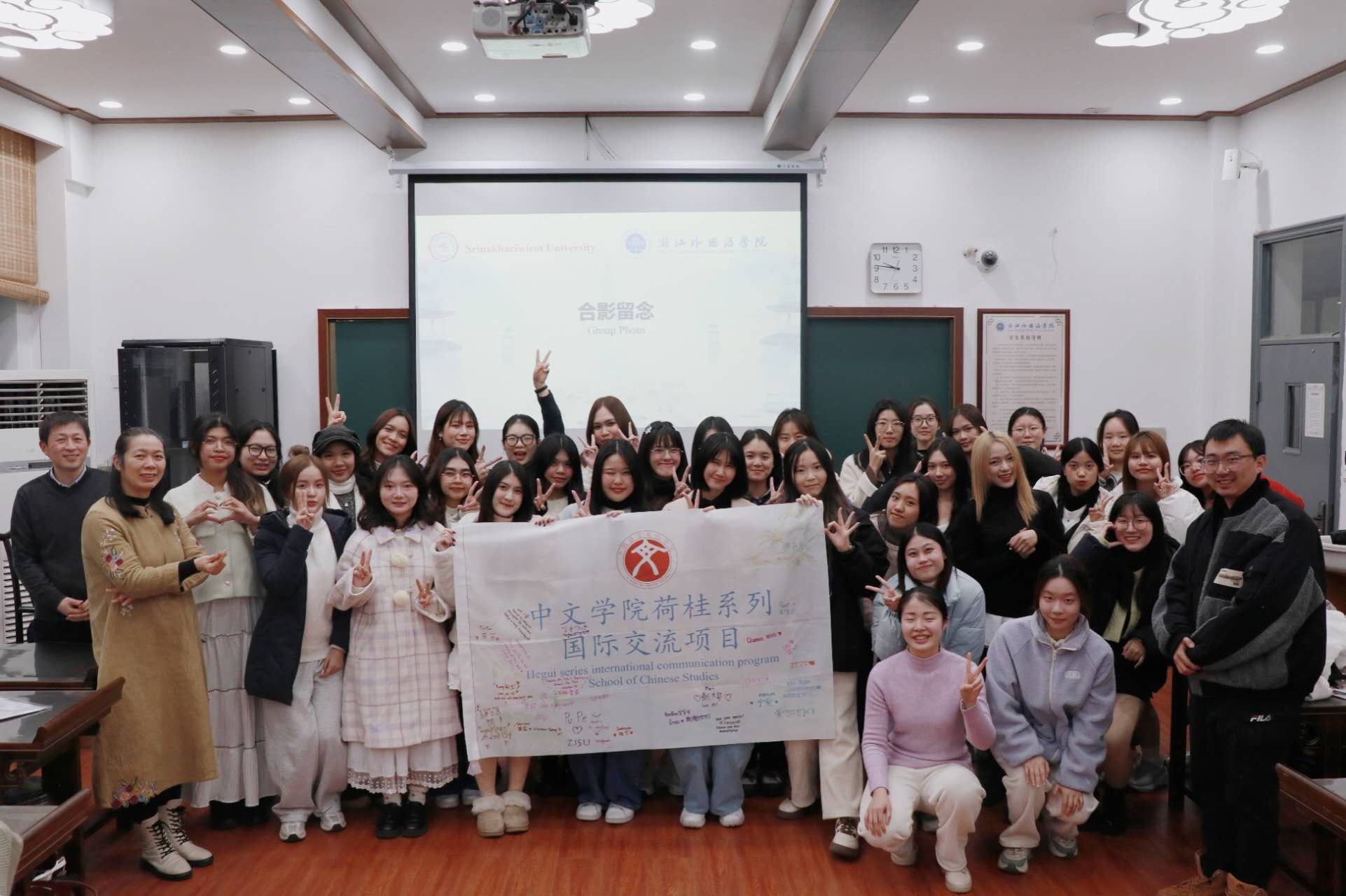仪式开始前,泰国的同学们满怀热情的在项目旗帜上签名留念,为他们此次独特的中国文化探索之旅留下美好印记。在过去的两周里,丰富多元的课程与活动让他们沉浸其中,收获满满。