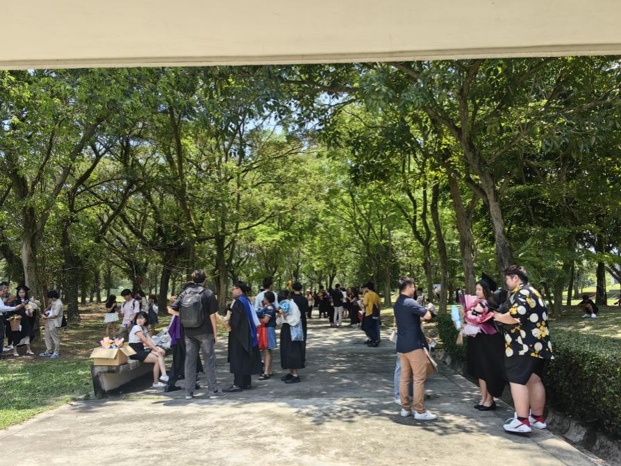 蒋艺哲:踏上马来西亚的土地,热浪裹挟着湿润的海风扑面而来,每一口呼吸都仿佛在吞吐着南洋的故事。拉曼大学金宝校区以其独特的自然与学术融合风貌令我印象深刻。校园中,马来传统风格的高脚屋建筑与现代教学楼相映成趣,热带植物掩映着钟楼与庭院,处处体现着“和谐共生”的办学理念。在迎新活动和校园参观中,我感受到了拉曼大学浓厚的学术氛围与开放包容的国际气息。来自世界各地的学子在此相遇,在这里语言与文化的差异并未成为隔阂,反而成为彼此理解的起点。