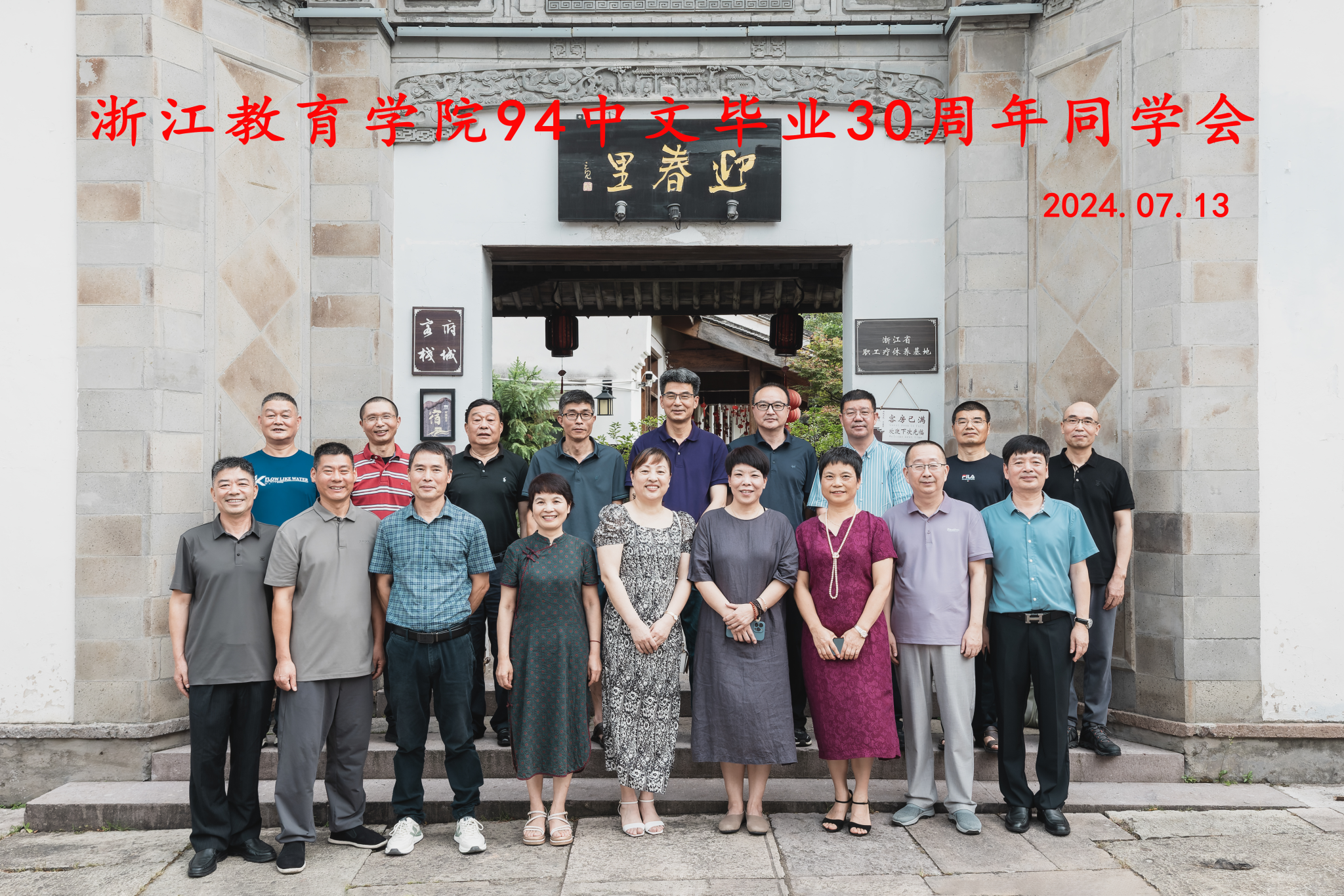1994届中文专业毕业生在郎伯凌的组织下举办毕业30周年同学会,并邀请了当时班主任刘福根老师前往台州临海欢聚一堂。班级同学早有约定,每次开同学会都要在同一条横幅上签字,此次已经是第二次落笔,大家希望恩师与27位同学能把横幅越签越满,祝愿师生人人安康,情谊山高水长。