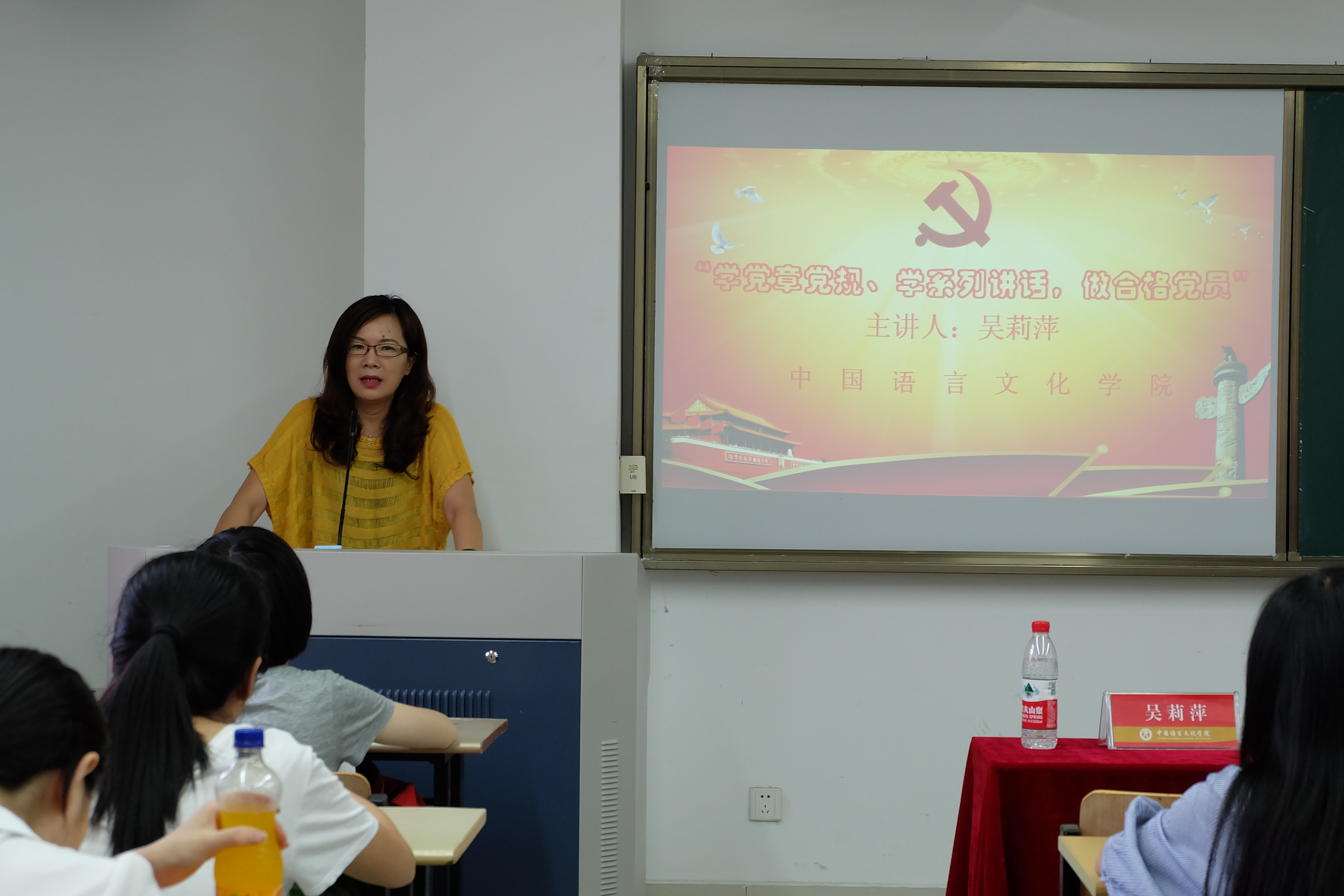 党总支书记吴莉萍为学院毕业生党员及入党积极分子上“两学一做”专题党课。吴书记围绕着“两学一做”精神和要求,深入阐述了“两学一做”的内容、本质及意义,并结合学校的具体要求,向同学们介绍了学院从学、训、赛等方面开展党员教师教研成果分享系列、专题党课系列、国际化特色高校建设系列、党员实践创新分享会、党员考研经验分享会、“两学一做”知识竞赛等切实推进“两学一做”教育的活动,目的是将“两学一做”与学院“十三五”发展相结合,与专业和育人相结合,与新一轮办学思想大讨论相结合,做深做实。同时,吴莉萍书记还结合同学们自身特点和所处时代特点,对毕业班同学们提出,要成为一个会感恩、能坚持、善担当、要实干、懂快乐的人,并对毕业生党员和入党积极分子表示了良好的祝愿,要求同学们不仅要做一名合格的党员,更要做一名优秀的党员。