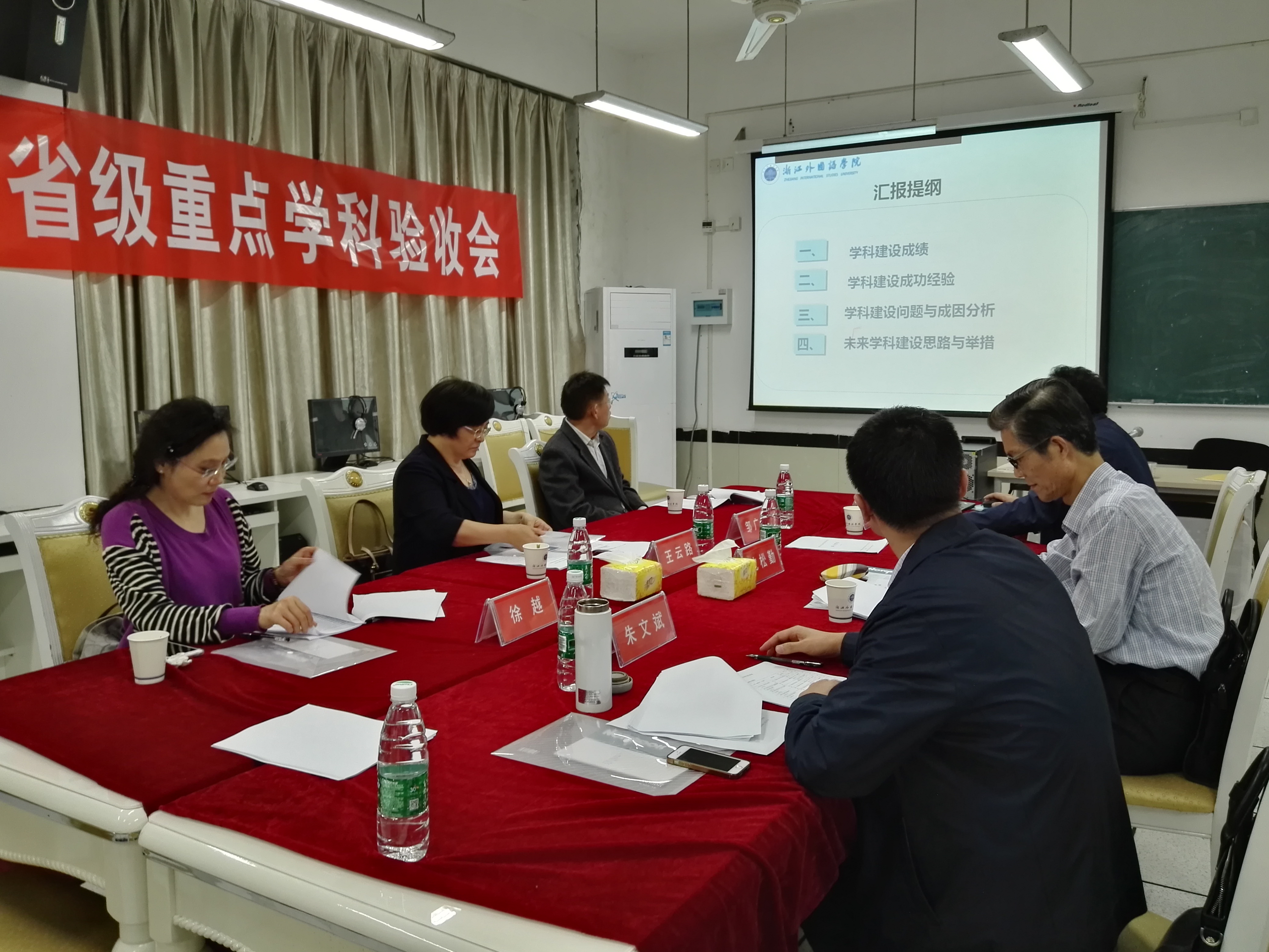 5月13日下午,中文学院在小和山校区实验楼召开“中国语言与文化国际传播”省级重点学科验收会。浙江大学王云路教授、邹广胜教授、杭州师范大学沈松勤教授、徐越教授、浙江越秀外国语学院朱文斌教授等五位评审专家及校科研处、中文学院部分教师参加了会议。