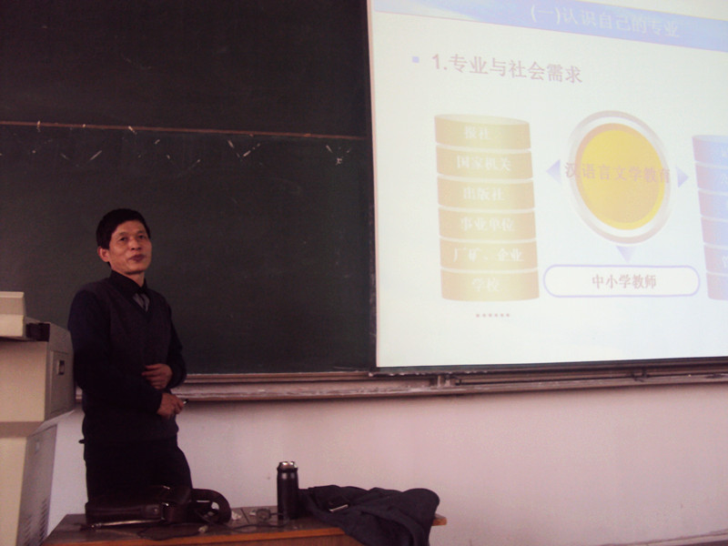 2013级学生做了题为“为理想插上翅膀——中文学生学习与研究方法谈”的讲座。这是中文学院为大一学生开设的专家教授系列讲座之一。