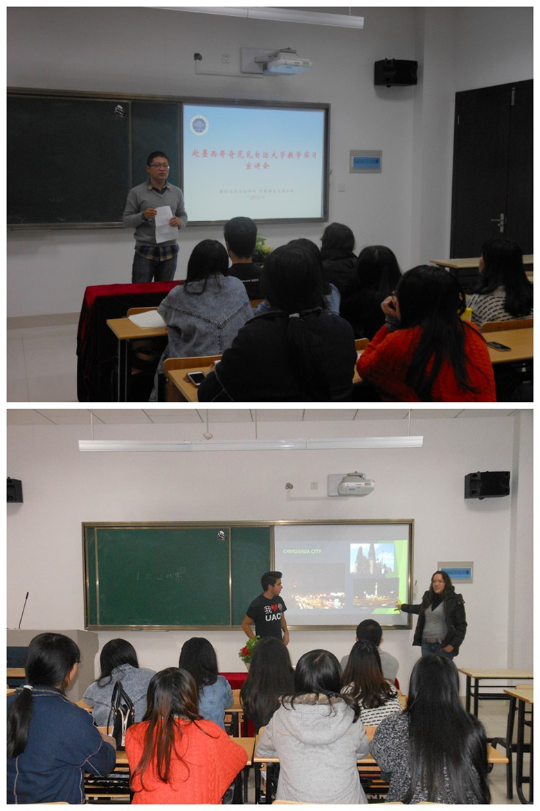 按照计划,首批学生将于明年2月-6月在墨西哥奇瓦瓦自治大学开展教学实习。中文学院积极宣传和组织,为有赴墨意向的对外汉语专业学生开设了西班牙语和墨西哥文化课外班,切实增强学生的跨文化交际和适应能力。
