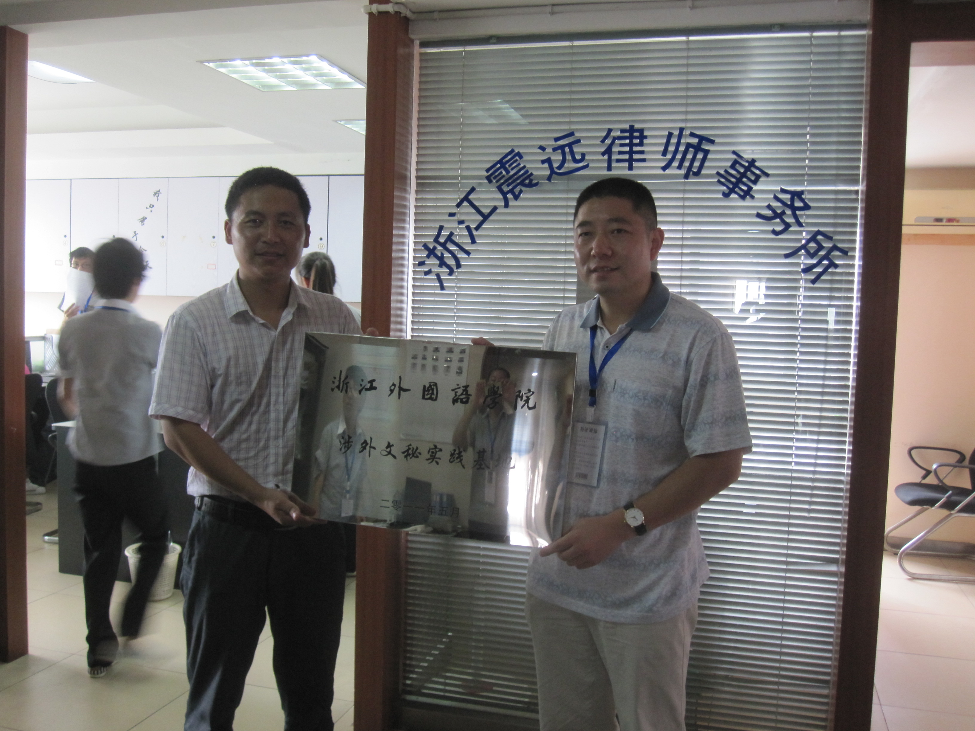 9月9日,中文学院与浙江震远律师事务所举行涉外文秘专业教学实践基地挂牌仪式和签约仪式。学院国际传播系副主任马宏程博士、汉语国际教育系副主任李倩博士、震远律师事务所阮剑豪主任共同出席仪式。该基地将为学生提供与专业对口的实践平台,并接纳多名涉外文秘学生进行毕业实习。