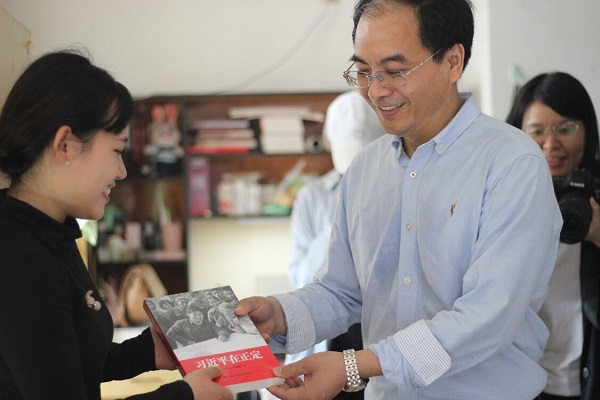 临别之际,徐部长给走访的每一间寝室都送上了一本《习近平在正定》,他鼓励同学们深入学习青年习近平的理想追求与优秀品质,勤奋好学、勇于实践,度过充实有意义的大学时光。