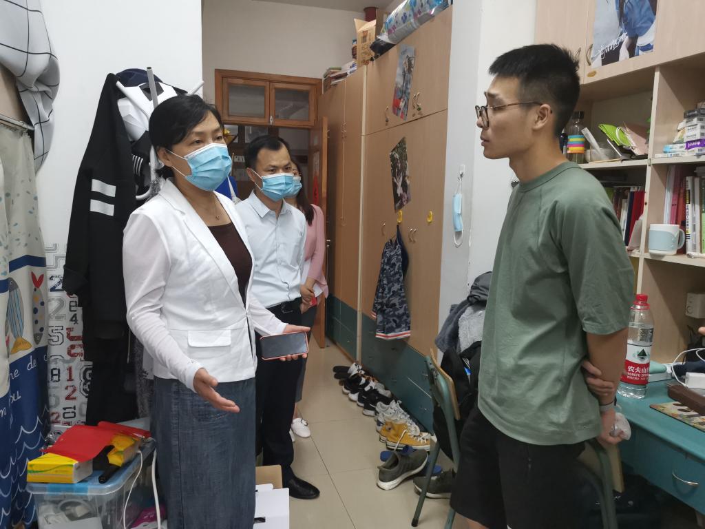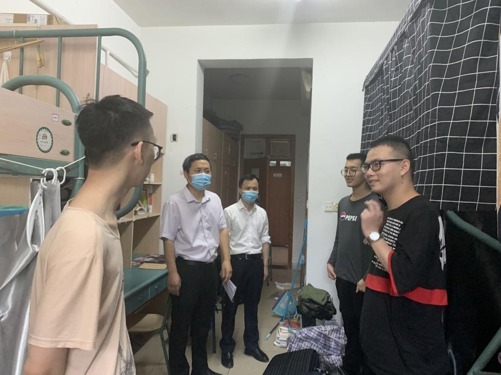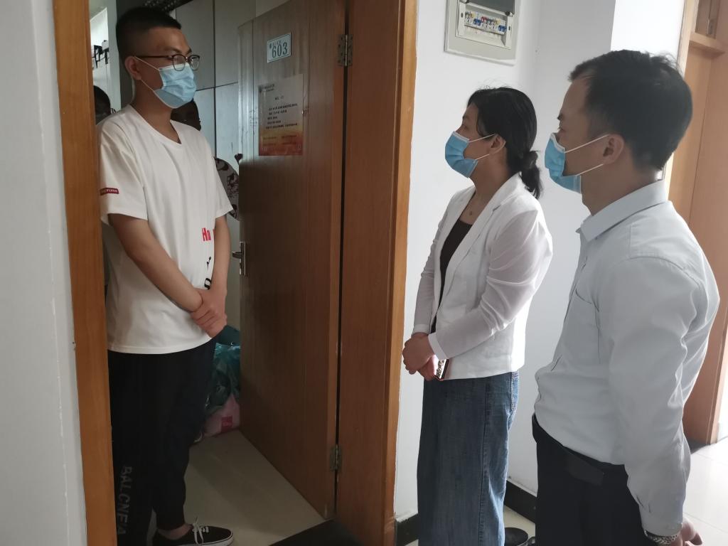 学院领导连续三天走访寝室,第一时间看望返校同学,关切询问返校感受、学习生活状况,叮嘱强调返校后个人防护工作。