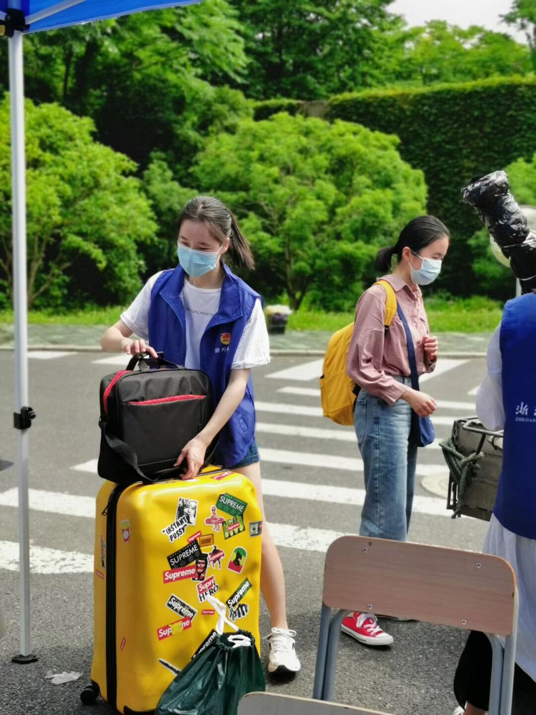 还有很多志愿者,来回穿梭在校园,热情参与学院和学校的返校志愿服务工作。
