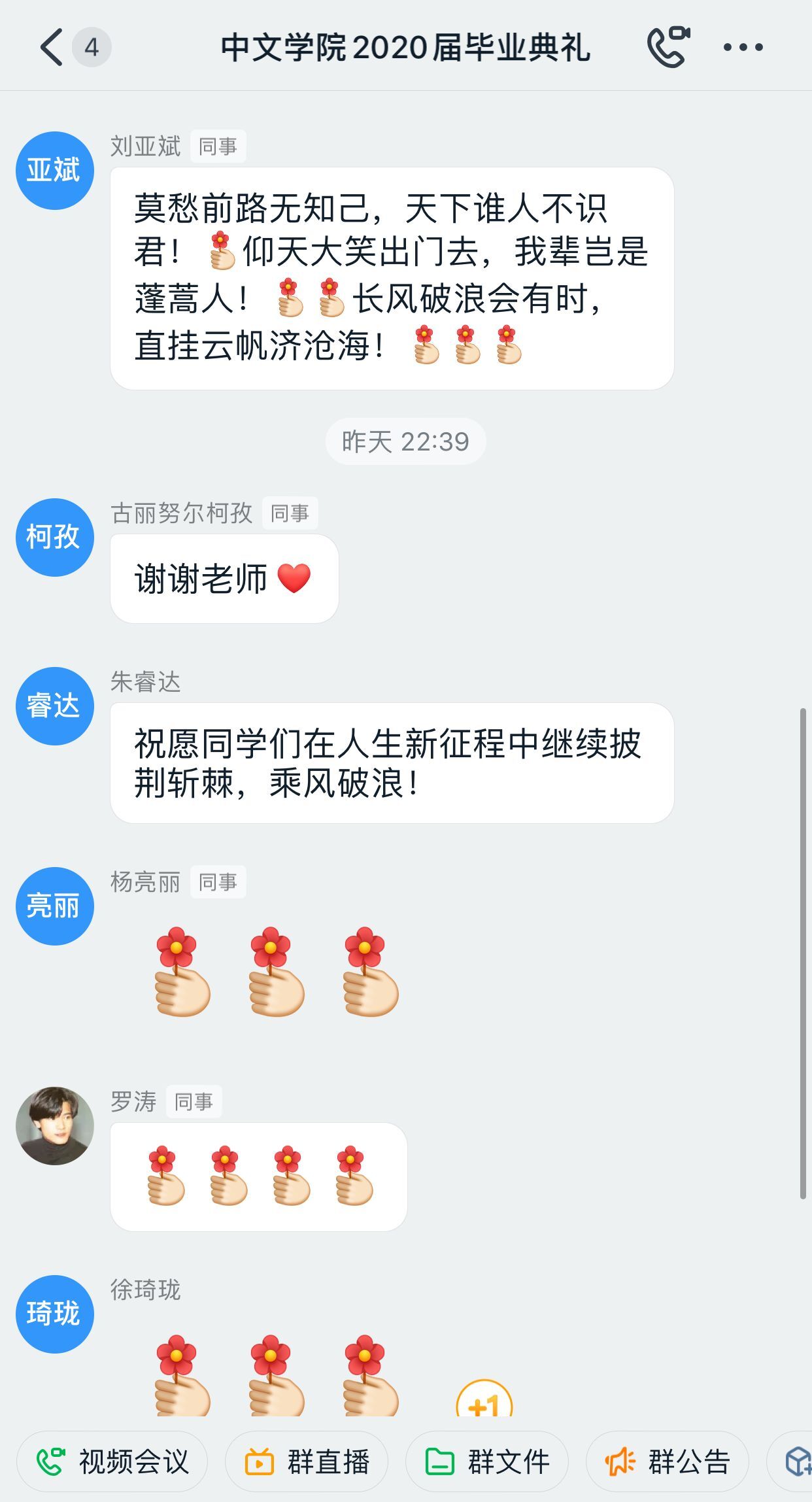 这虽是一场隔着屏幕的观看的毕业典礼,却让毕业生们感受到了学院和同学之间浓浓的暖意。典礼结束后,大家还迟迟不愿关闭离开线上直播,许多同学还在群里互道祝福,依依惜别,并通过留言评论、朋友圈分享等形式实时互动,尽抒感恩与不舍之情。