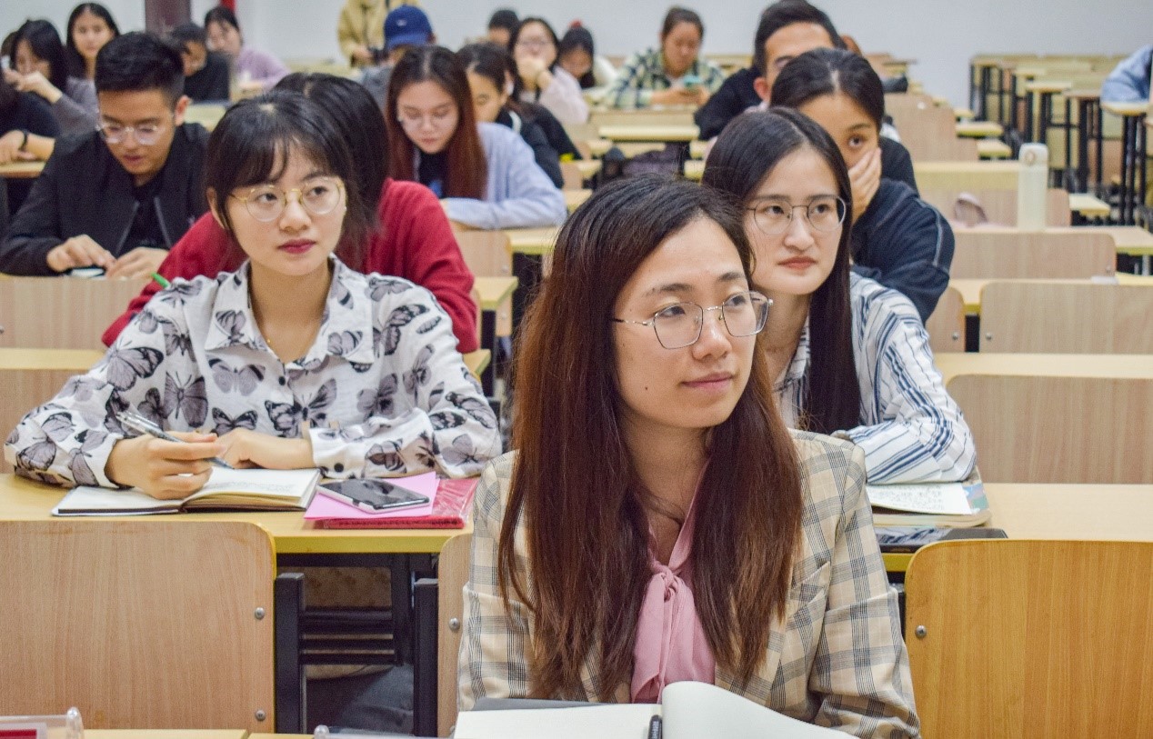 党总支副书记陆卫斌在品院A508给学院全体学生党员们上了一节生动的党课。