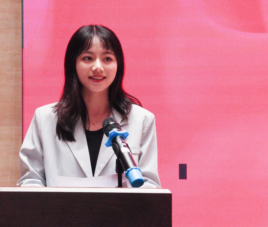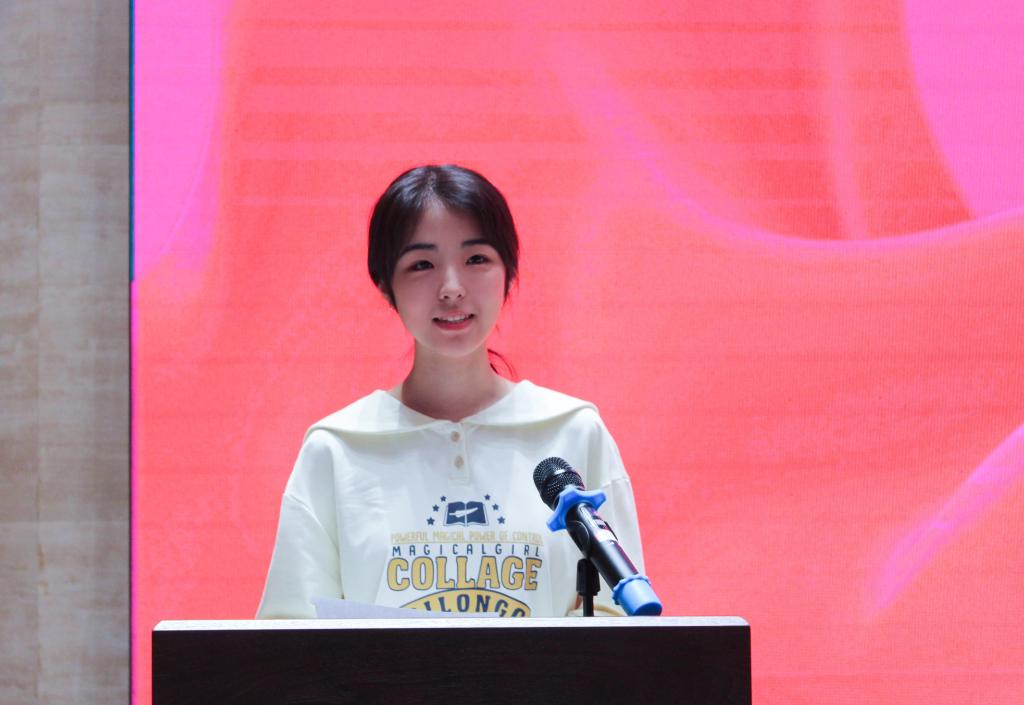教师代表孟奕辰博士向新生寄语,望同学们在学业中重视品德、时间和身心管理,“明理有志,天地转光阴破,一万年太久,只争朝夕”。