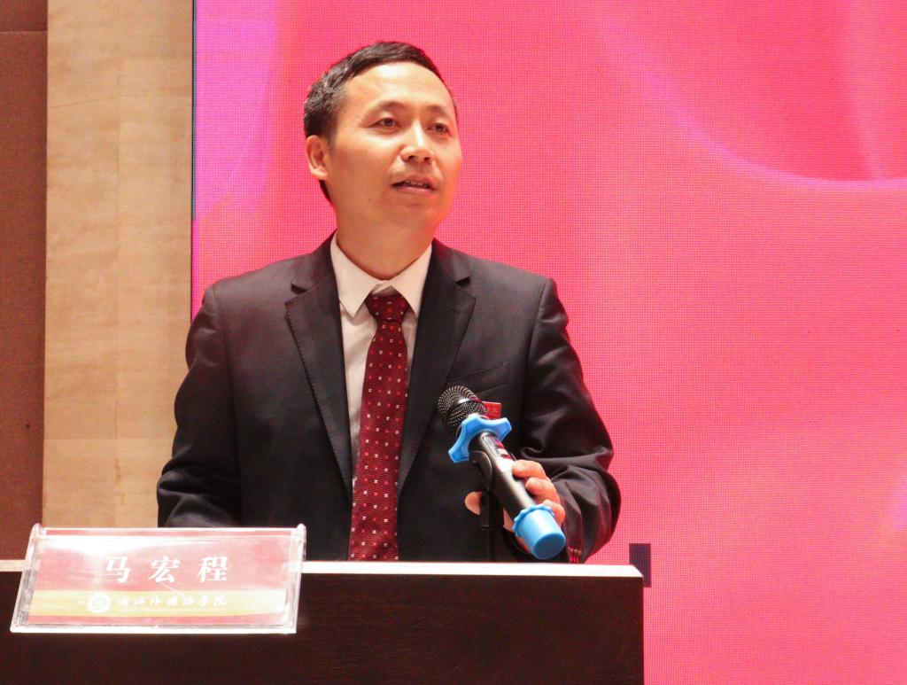 副院长马宏程教授致辞,代表学院对全体新生表示欢迎与祝贺。他指出,学院师资和学生素养优势明显,学院建设积淀深厚,近年来各专业录取分数持续提升,衷心感谢社会、家长和新生的信任。他期望新生进入大学后不要松懈,坚定自信学会读书、思考和善良,求真向善,并把奋斗作为青春最亮丽的底色。