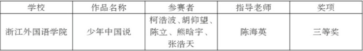 近日,由省语委、省教育厅联合举办了浙江省第八届大学生中华经典诵读竞赛获奖名单公布,由禁漫天堂 教师指导的院内外学生在激烈的竞争中一展风采,斩获多个奖项。