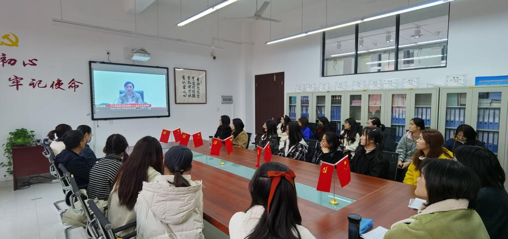 理论中心组成员及有关学生代表参加现场会议,同时集中组织师生通过在线观看直播进行学习。