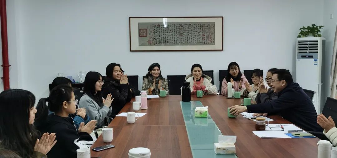 学院党总支书黄莺、副书记陆卫斌等一同参加座谈。