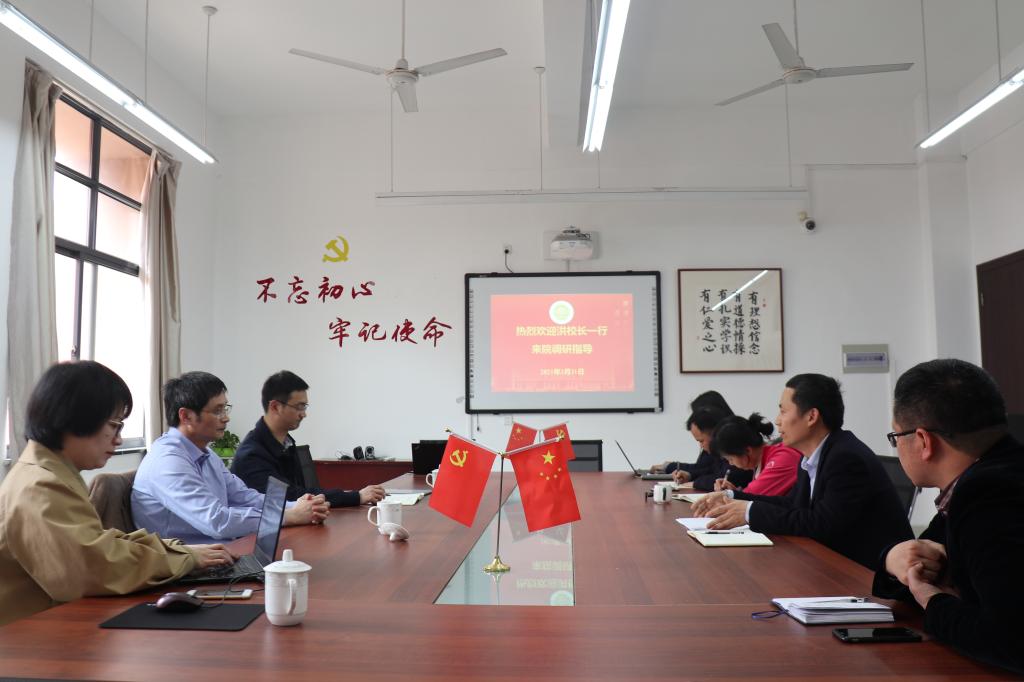 3月31日下午,校长洪岗到中文学院调研指导,教务处处长姚旻、党校办副主任葛青青等陪同调研。中文学院黄莺、马宏程等党政领导班子全体成员参加调研会。