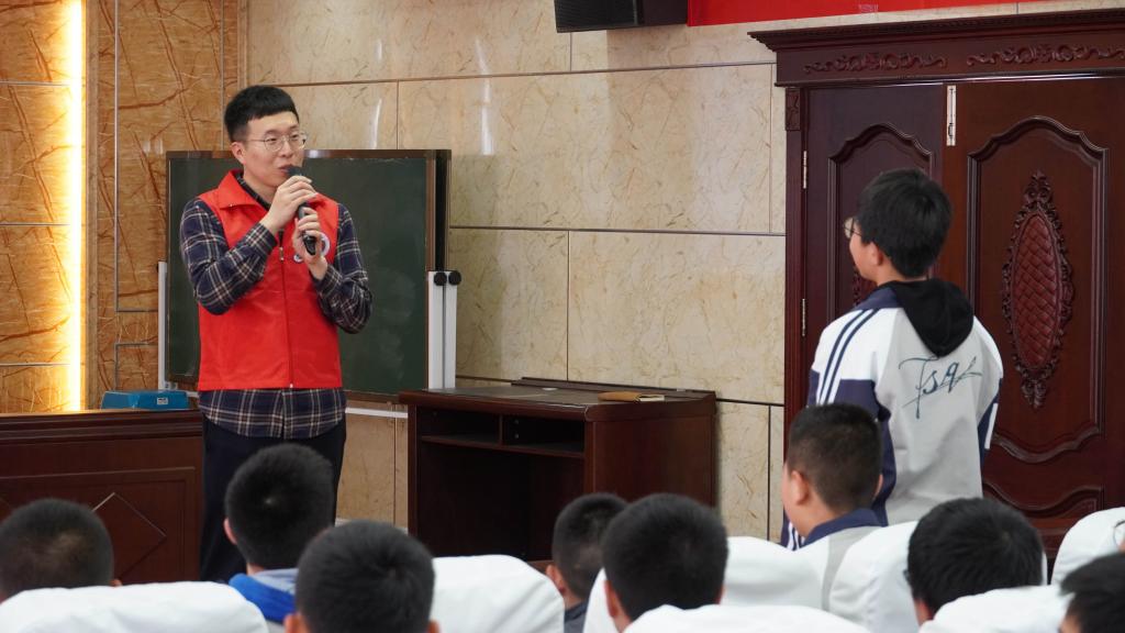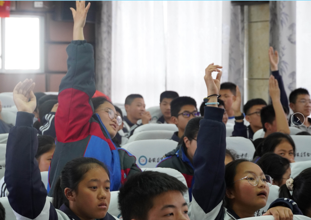 在互动环节中,学生们表现出了极大热情,一个个迫不及待地参与党史知识问答;宣讲队员还带领学生们以朗诵红色诗词、唱响红色歌曲等方式表达对党和祖国的热爱。