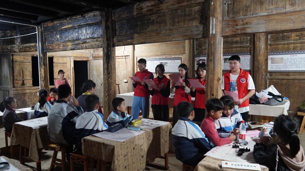 也发挥专业特长,组织党员师生多次到当地开展了村庄“文旅融合”发展规划调研、旅游文化系列宣传片拍摄推广、国学经典进乡村、关爱留守儿童等等活动。