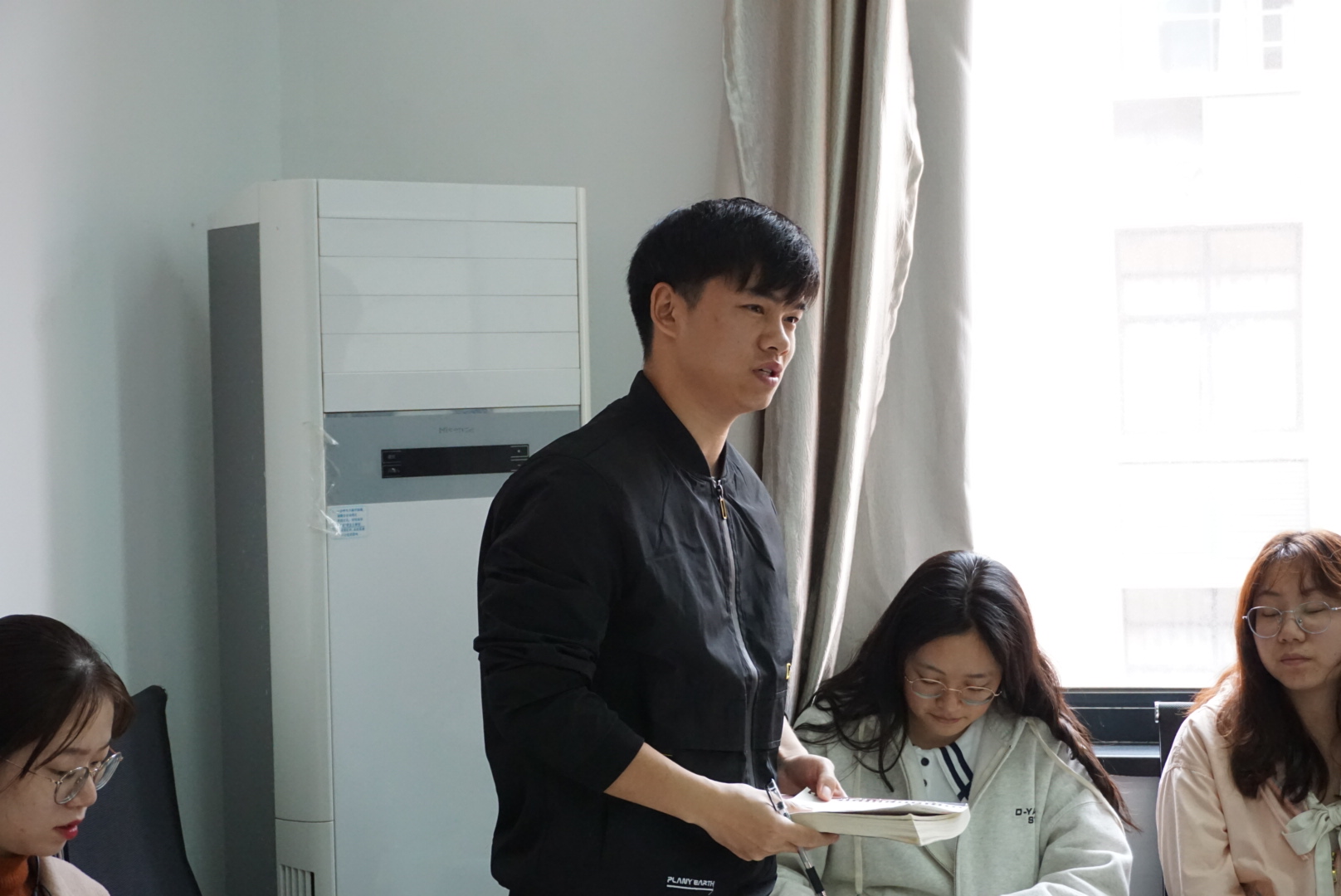 在交流环节,同学们踊跃发言,提出了很多问题,各位党员教师结合自己的经验和专业,一一为同学们答疑解惑。在确定考研专业和学校的问题上,马丽老师给大家的建议是选择专业可以结合兴趣爱好,但同时还需要与自己的职业规划和人生规划相结合;选择学校需要根据自己实际情况而行。朱睿达老师就同学提出的有关考研时间规划的问题作出了回复。他指出“考研需要保持一个好的心态,要有合理的时间规划,加强自我约束能力,要自己勇敢克服考研准备过程中的一系列问题,协调好自己的时间。”黄凯、孙雅微老师也为同学们解答了先考研还是先就业的疑惑,“不论是考研还是就业都要适合自己”,引导同学们树立一个更加明确的目标,为大家明确未来的奋斗方向提出了一些中肯的建议。