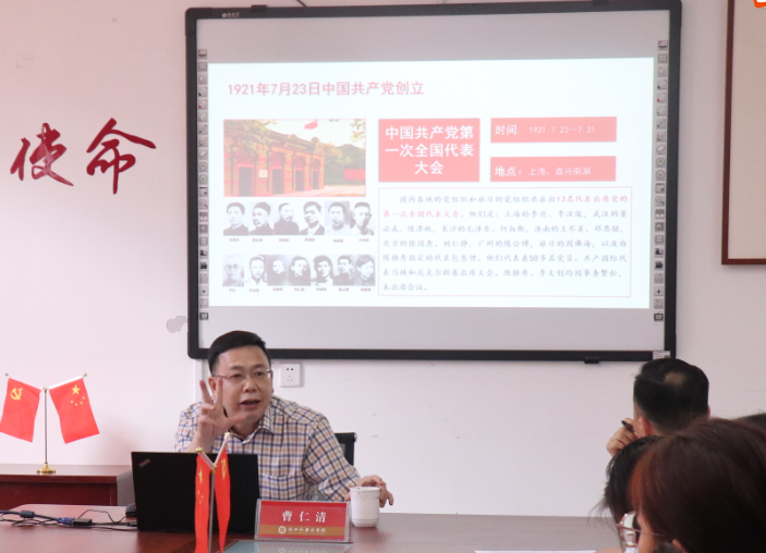 曹仁清以“光辉历程 辉煌百年”为题,强调了党史学习教育的重要意义,深刻分析了党史发展的主题主线、主流本质,结合实际与体悟,以生动的语言、深刻的见解,系统全面分享了我党在不同历史时期完成和推进的四件大事,带大家从党的百年历史中汲取智慧和力量。讲课中,他不断给予同学们殷切的叮嘱:“我们学文学,一定要了解历史”“党章是党的根本大法,是管党治党的总规矩,作为党员我们一定要学好党章,经常性地开展学习”“实现党的第二个百年奋斗目标,需要在座的青年一代挑起重担扛起责任,现在你们要学好知识和本领”。