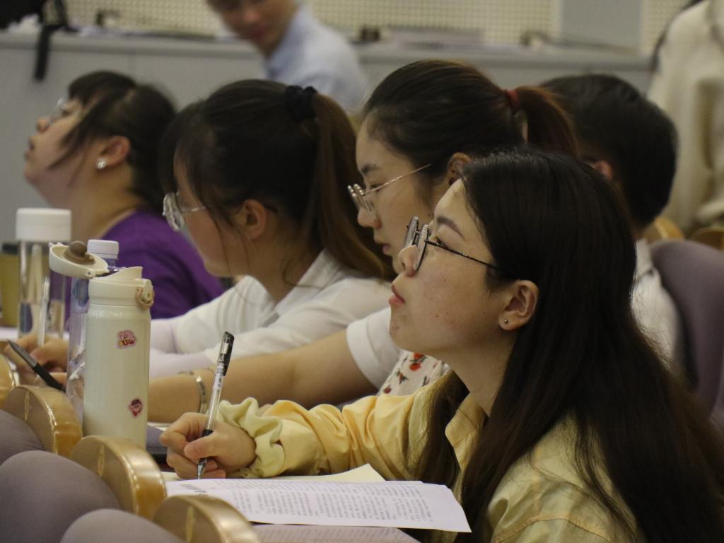 、教育学院、图书馆党组织负责人和部分师生党员代表100余人参加听课。